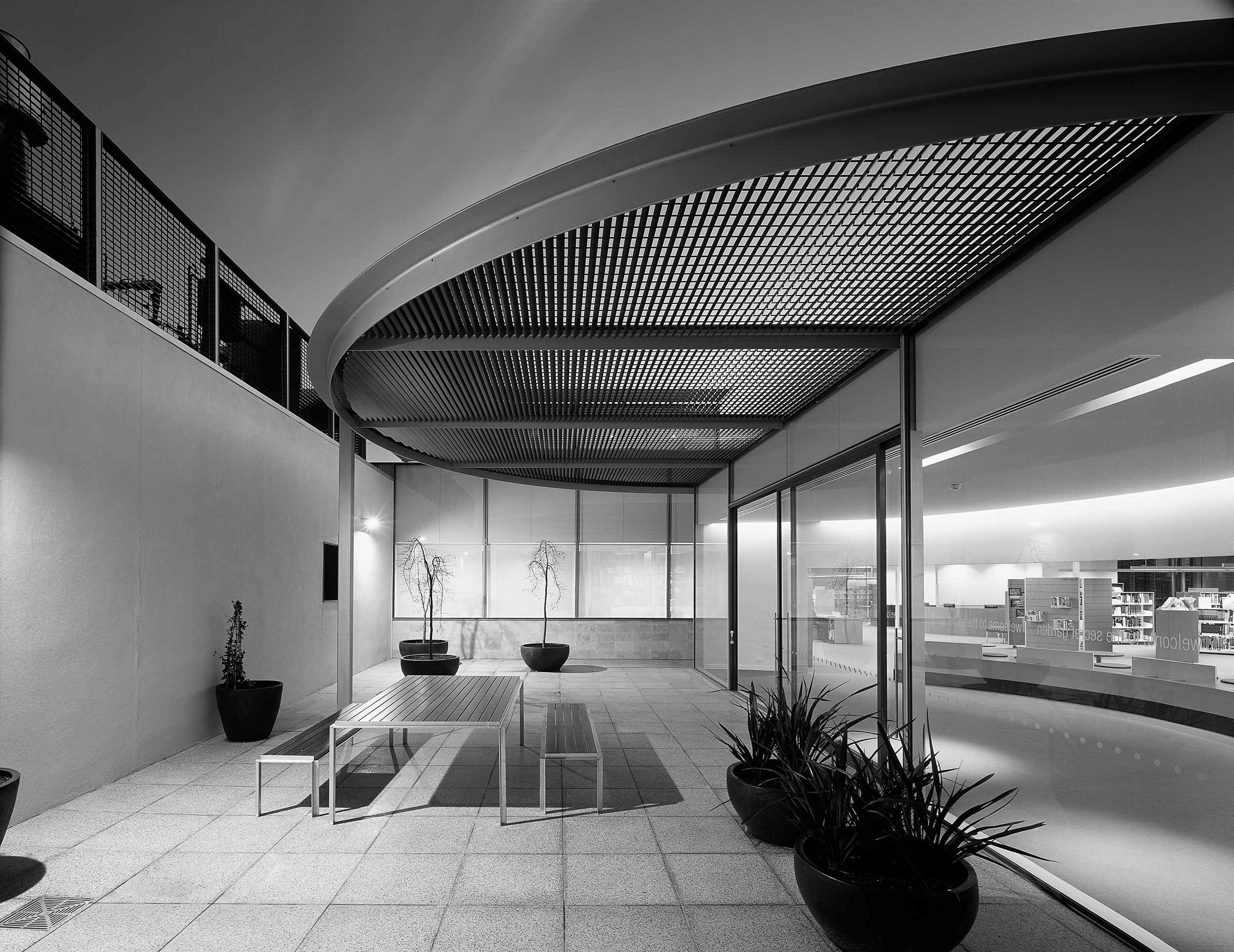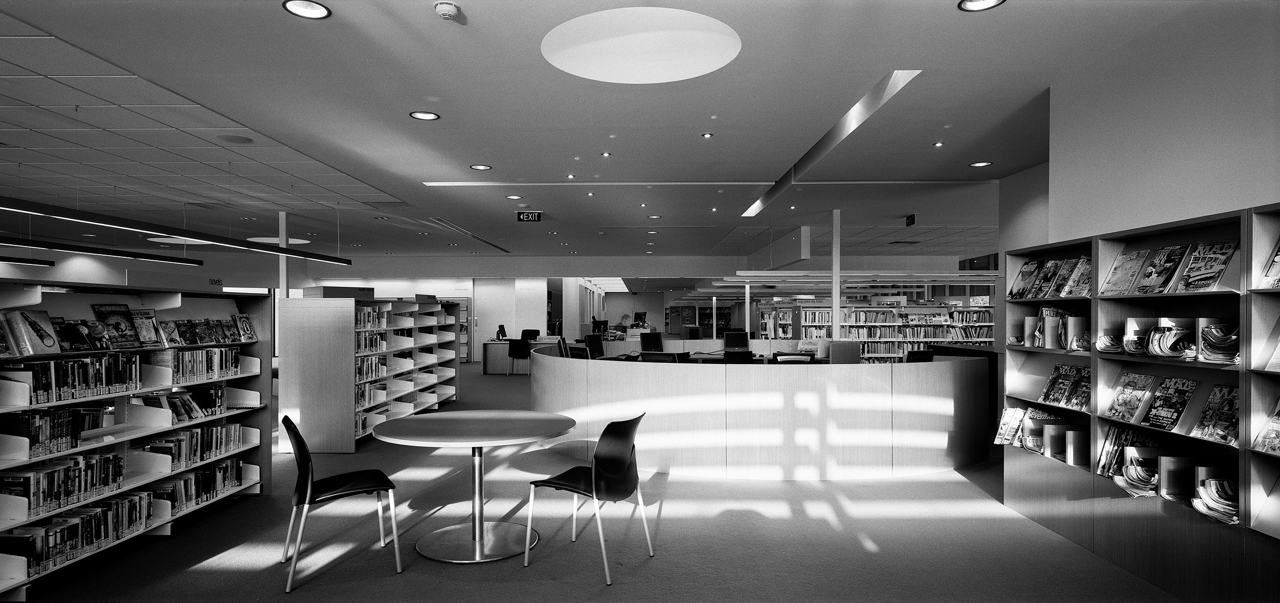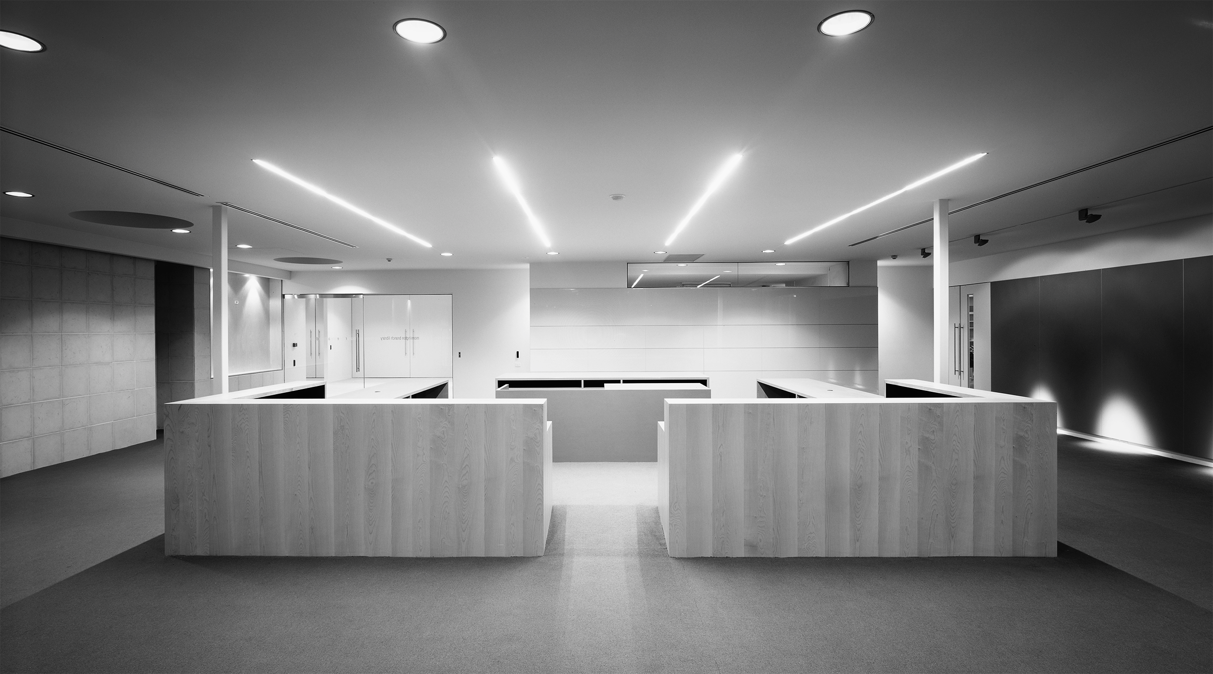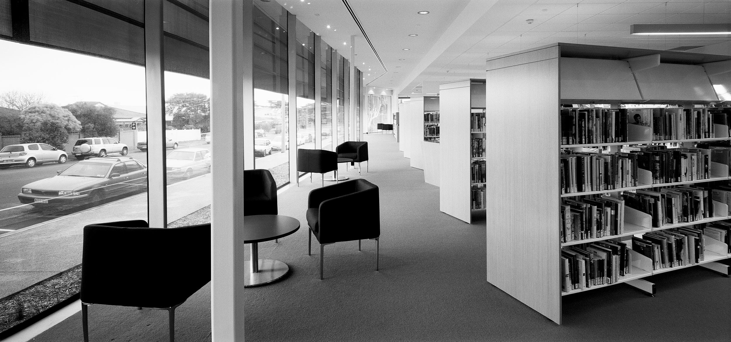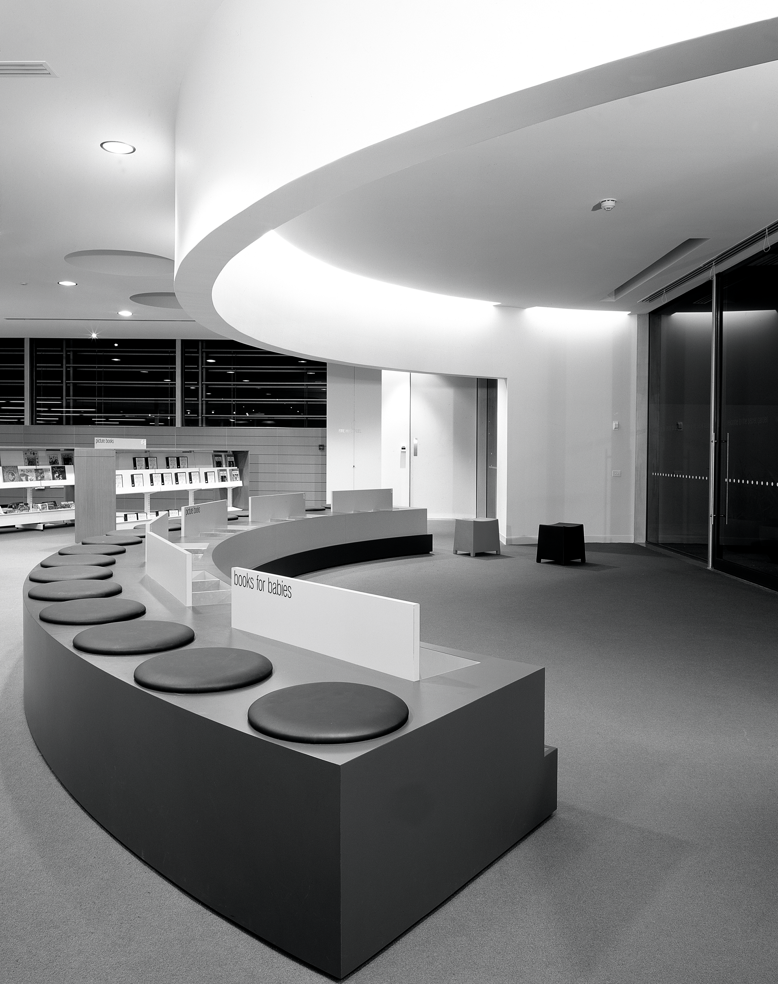 “A sophisticated understanding of the public institution and its role in a local community underlies this carefully conceived project … The plan has been orchestrated to draw you in and to create a sense of narrative as you move through the building. The floor and ceiling work in concert to frame events within the space — the loans counter, computer workstations and children’s book area — and define such moments within the plan. Together with the expanse of frameless glass, controlled viewlines and cool minimalist palette, the cinematic qualities of the space are strong.”