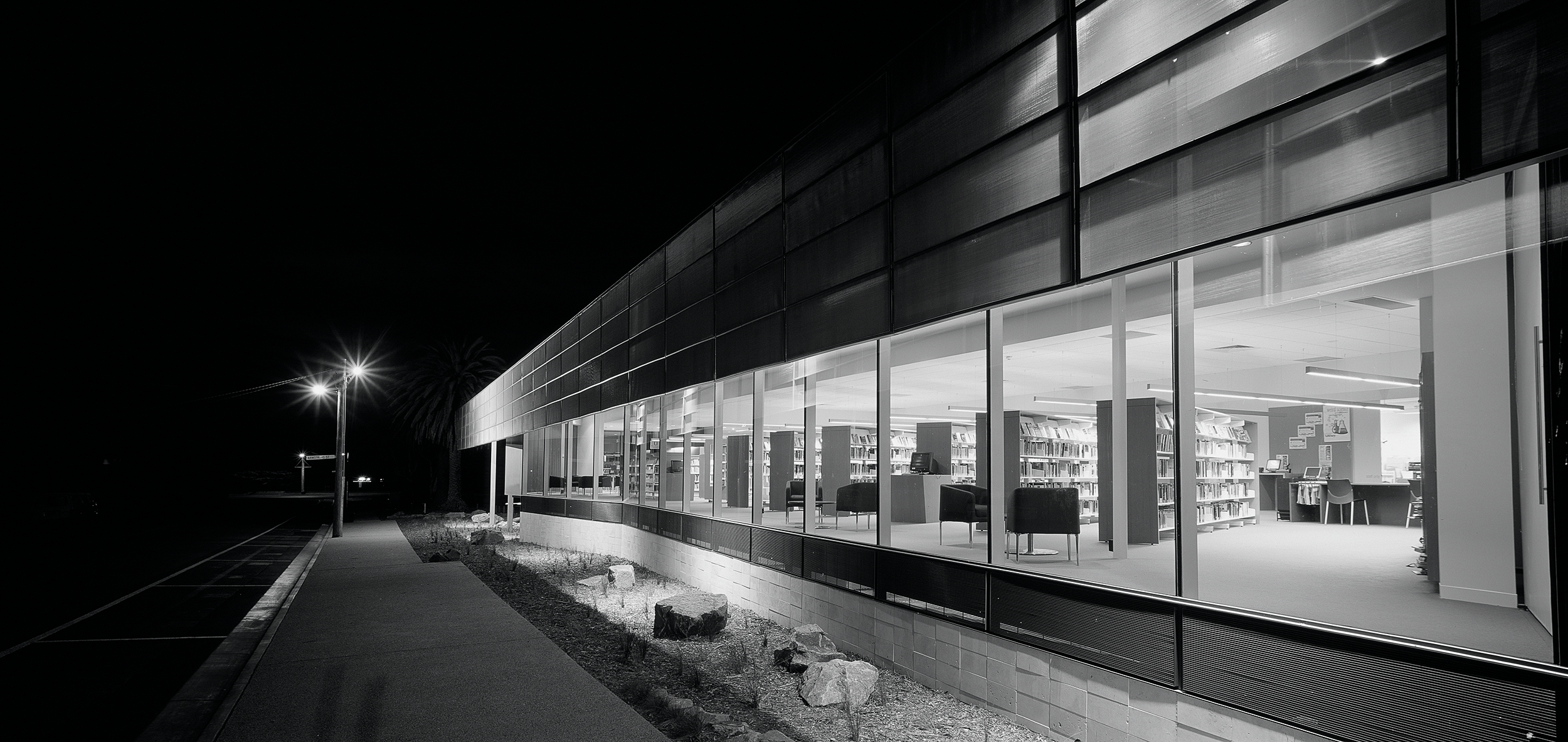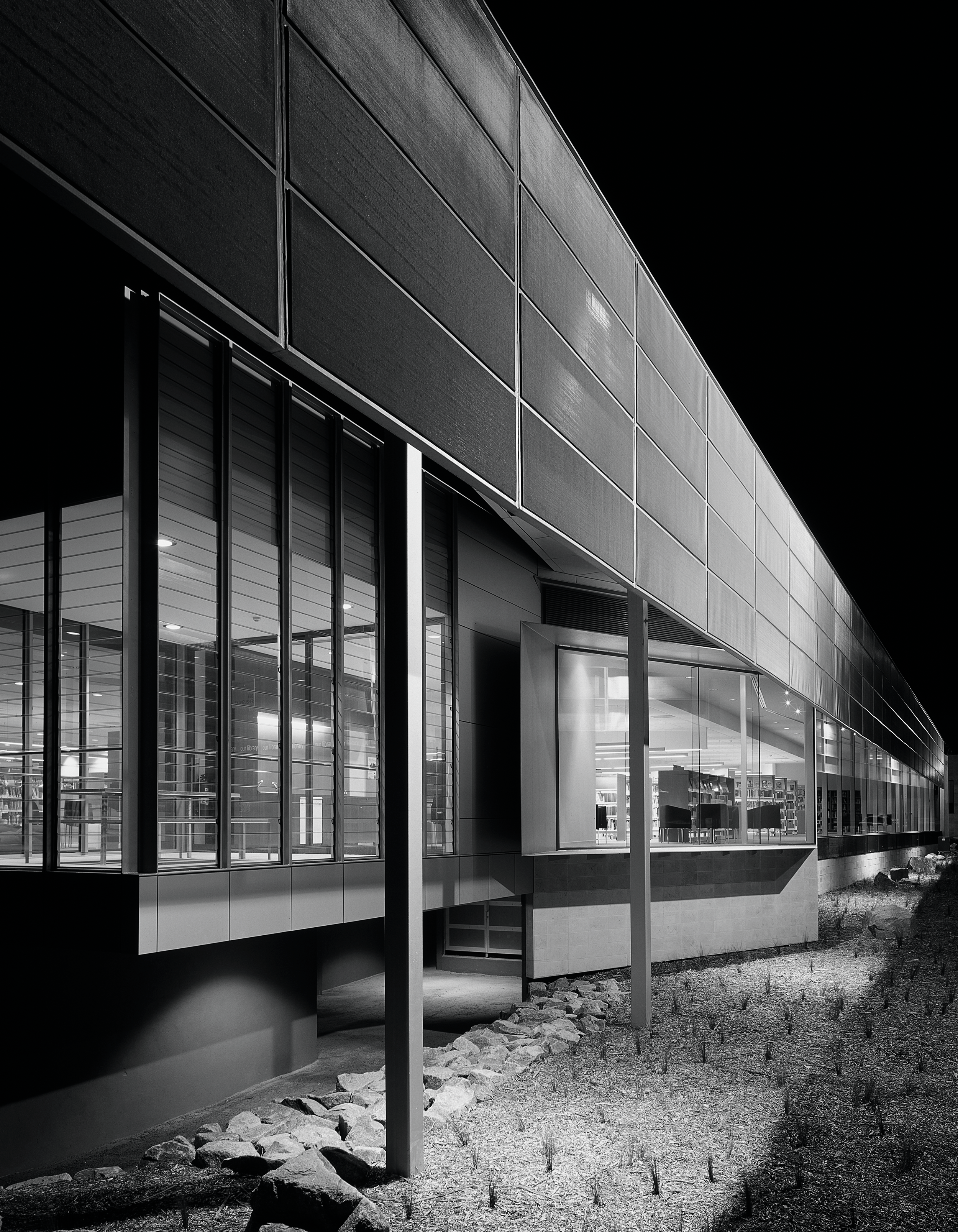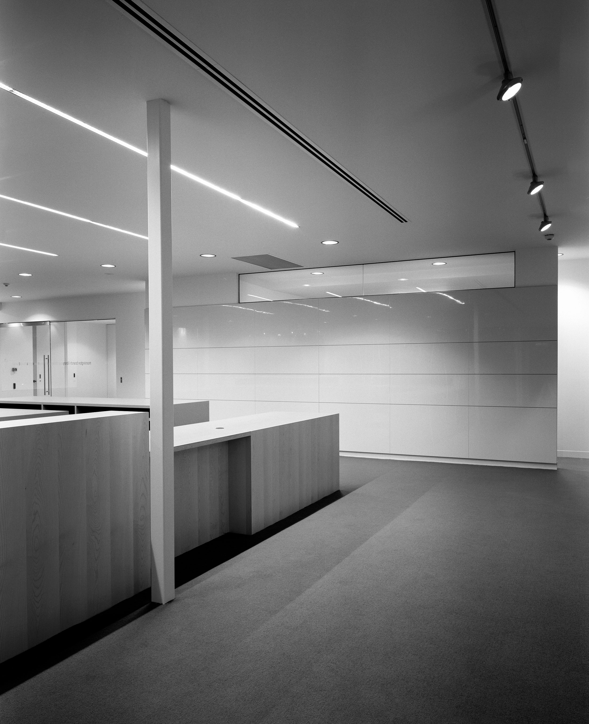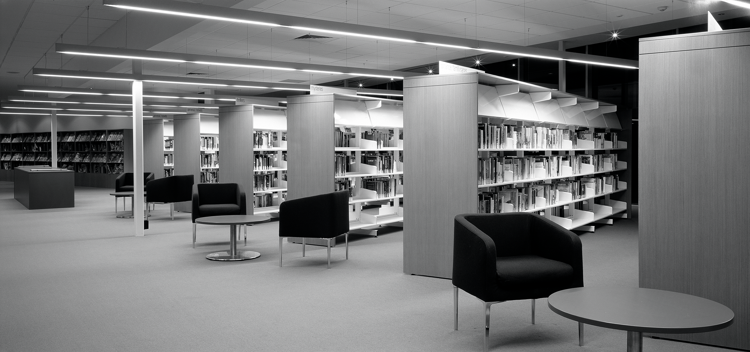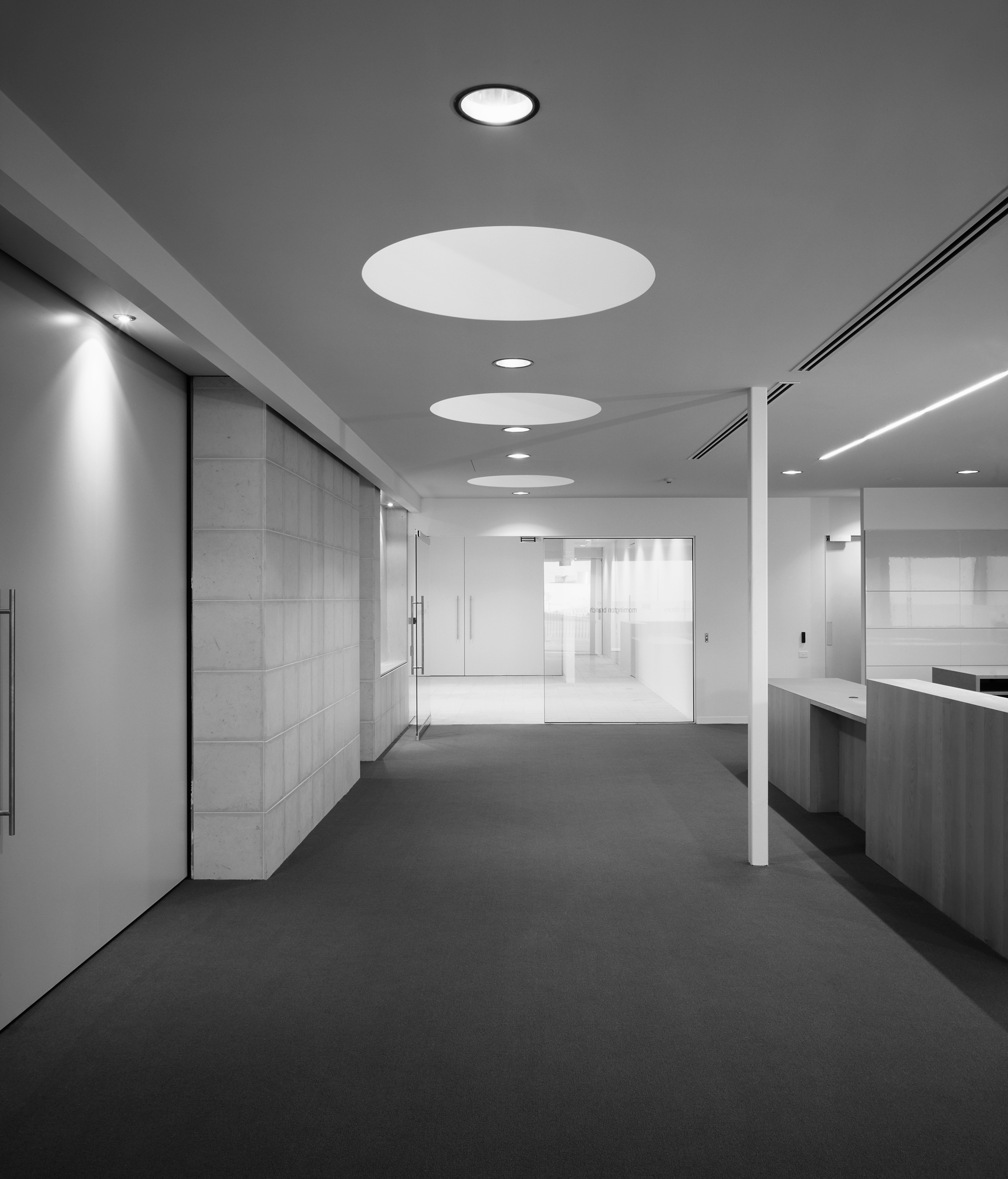 “A sophisticated understanding of the public institution and its role in a local community underlies this carefully conceived project … The plan has been orchestrated to draw you in and to create a sense of narrative as you move through the building. The floor and ceiling work in concert to frame events within the space — the loans counter, computer workstations and children’s book area — and define such moments within the plan. Together with the expanse of frameless glass, controlled viewlines and cool minimalist palette, the cinematic qualities of the space are strong.”