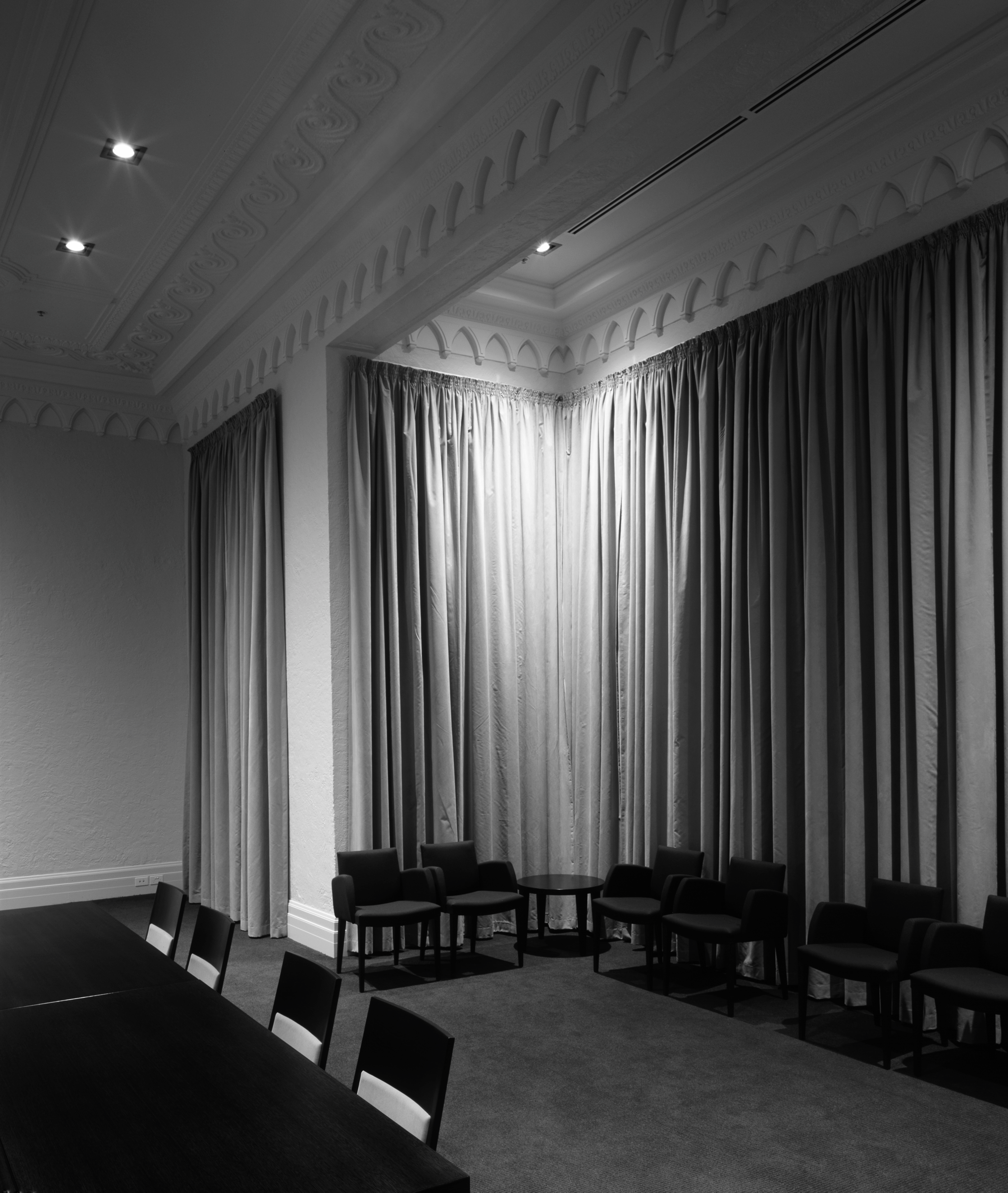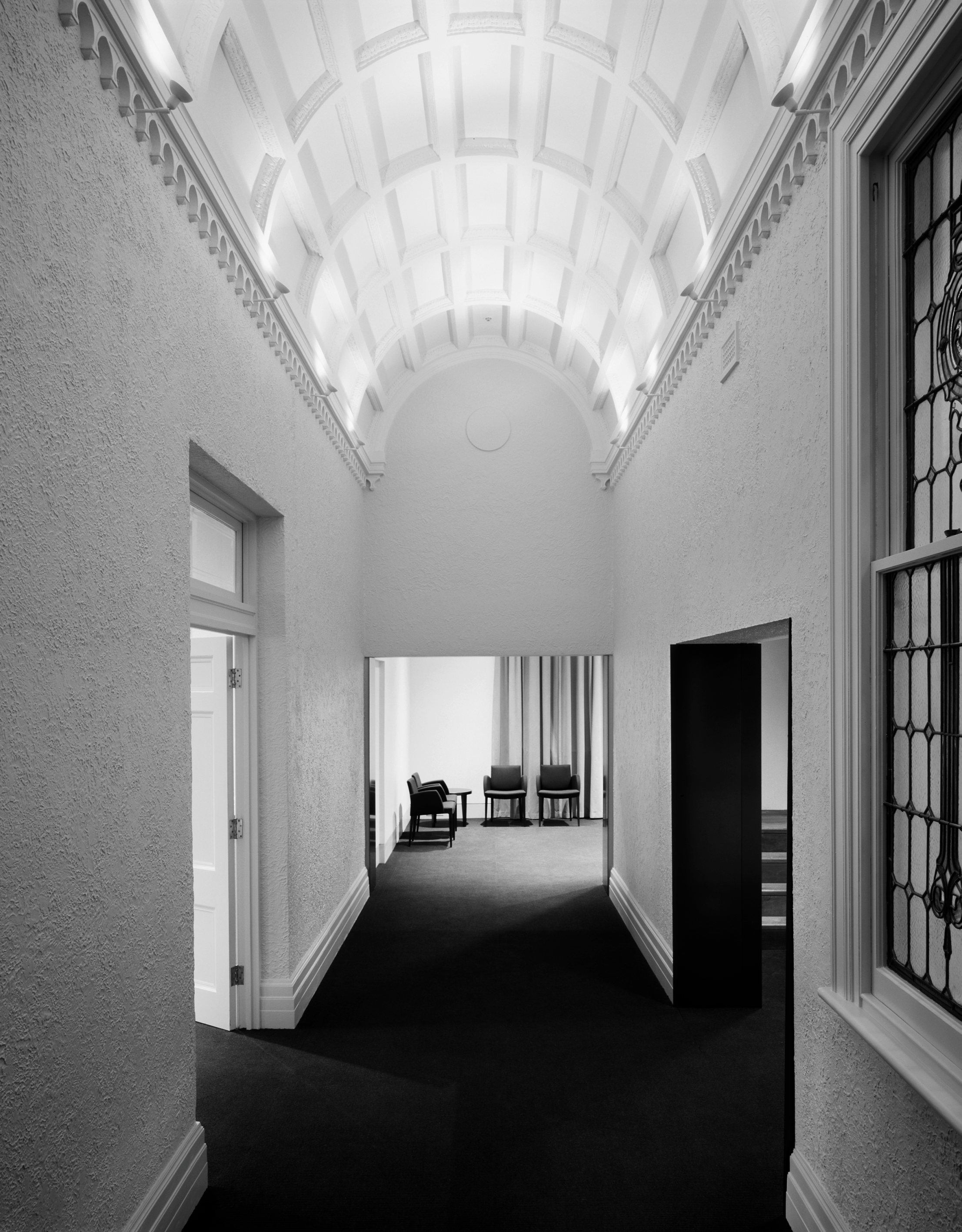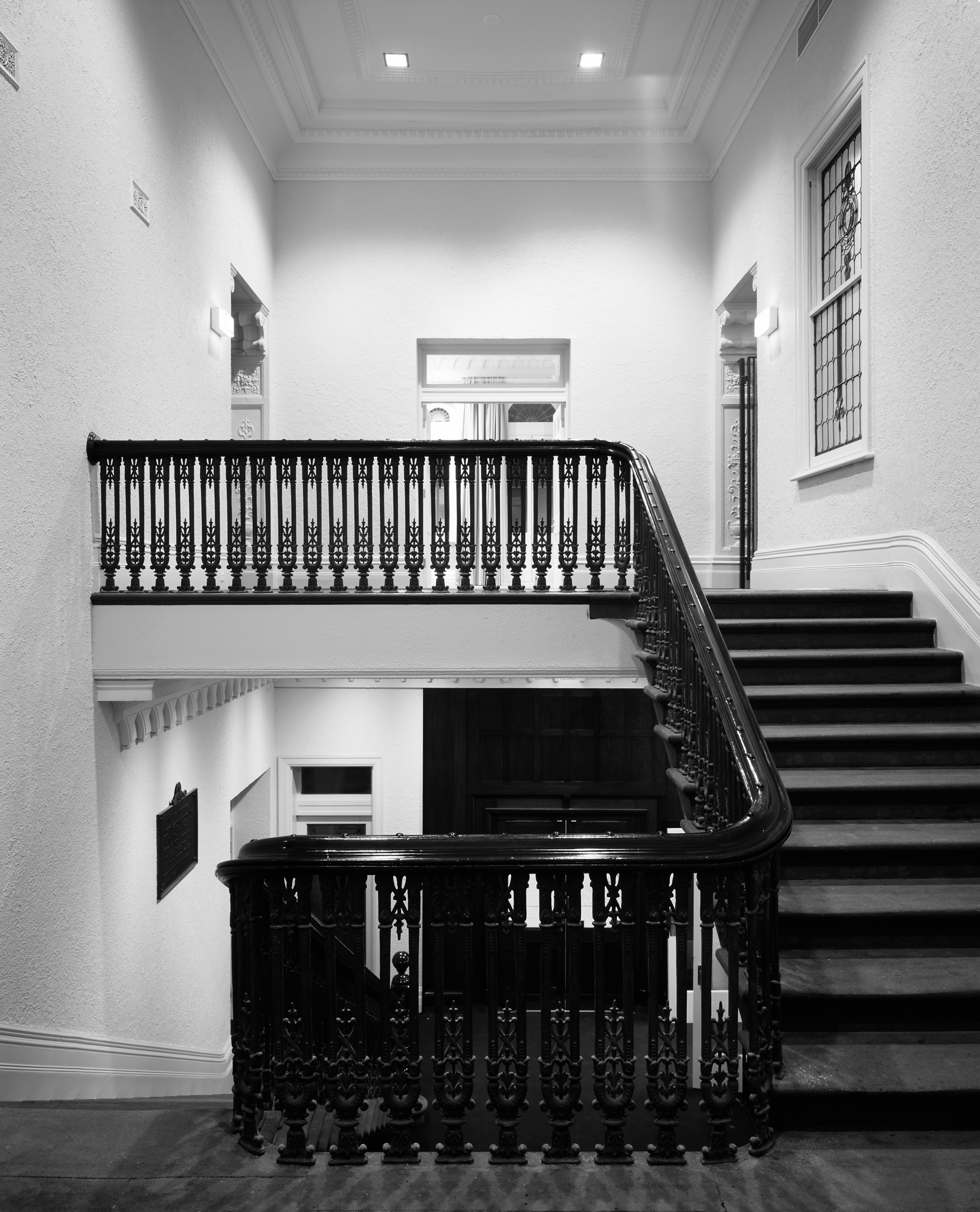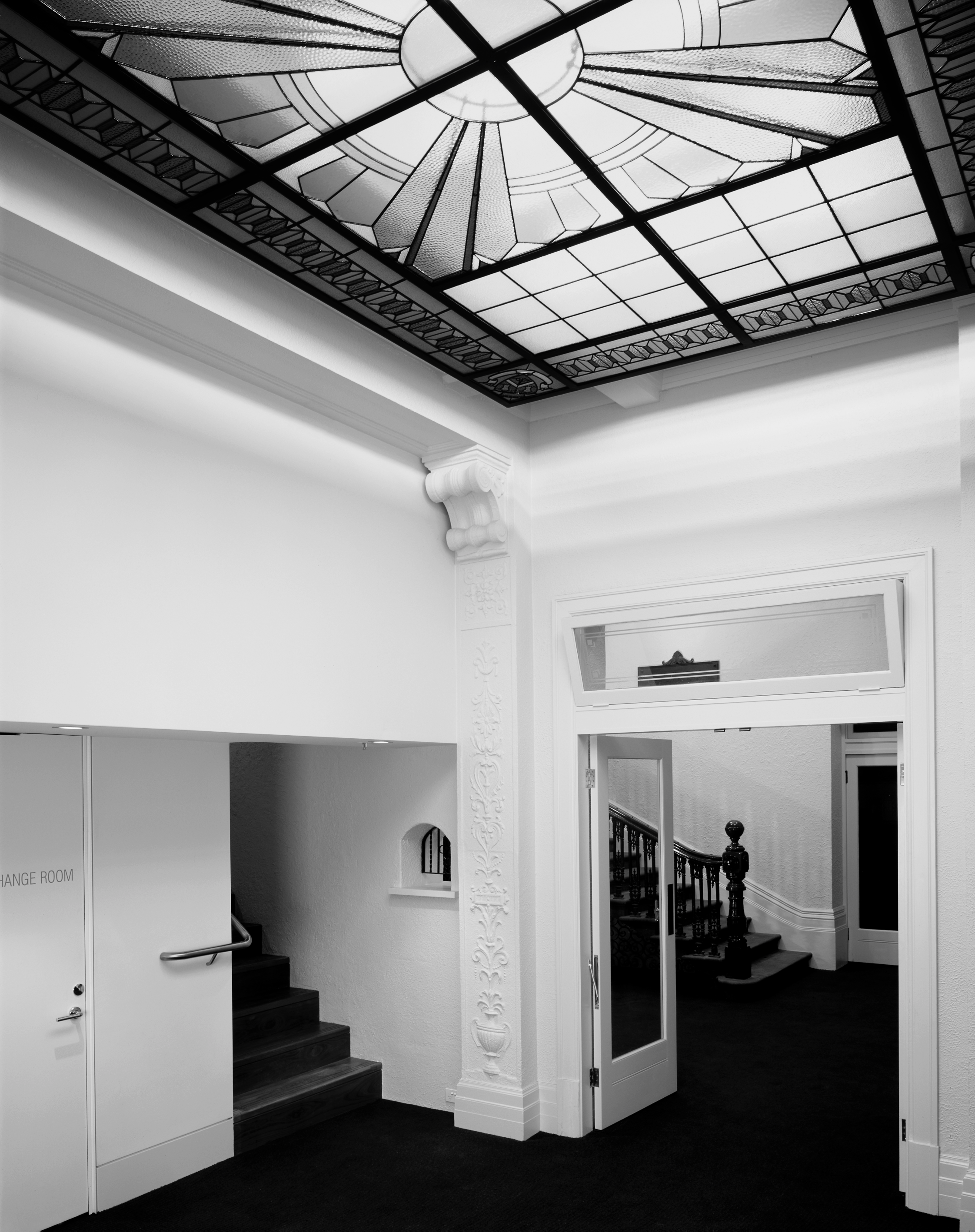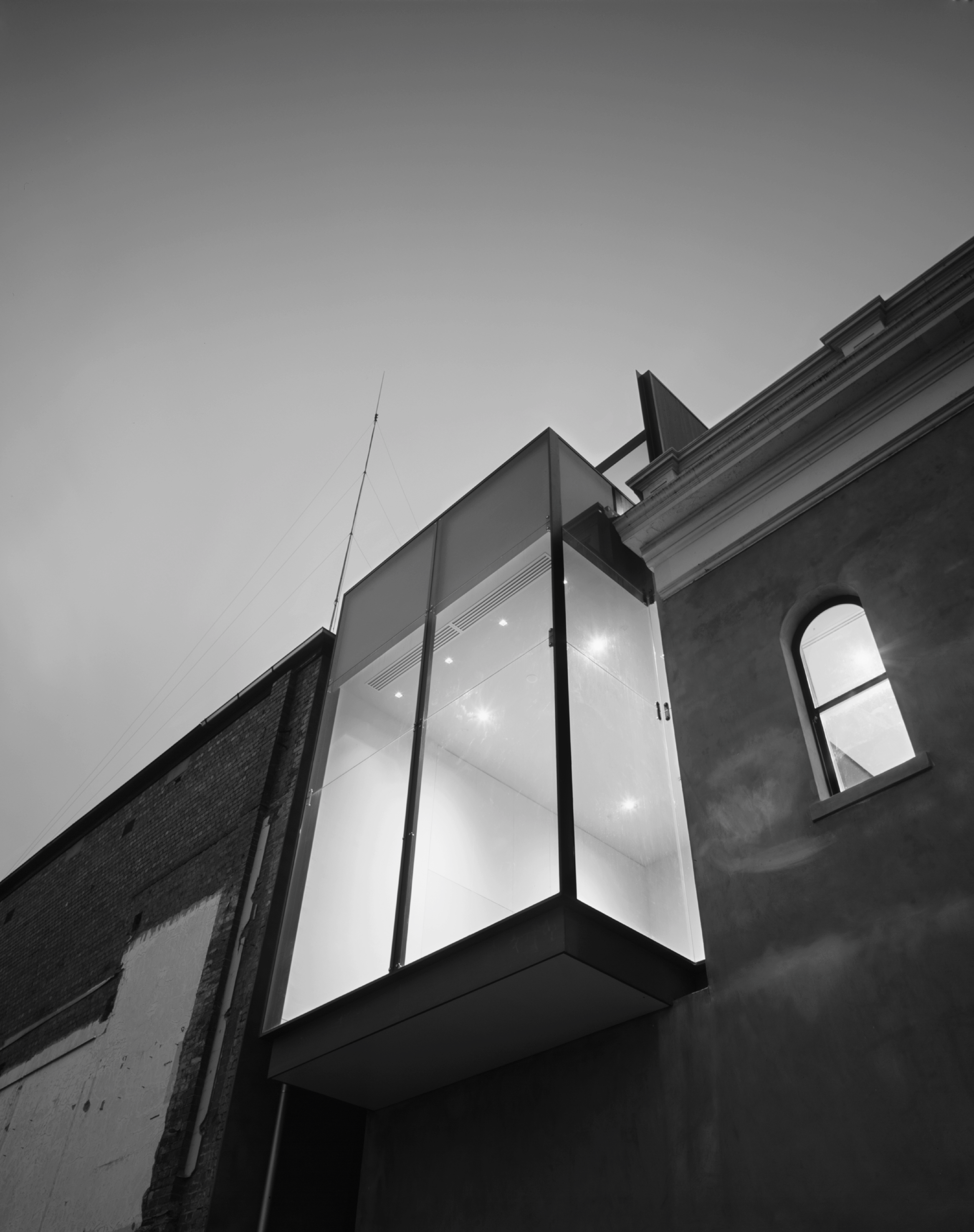 The Stage 1 upgrade incorporated public amenities, universal utility, and restoration to significant spaces that had deteriorated. We uncovered a cantilevered bluestone stair, celebrating it in a redefined stairwell. A new function room was inserted into the roofscape, offering city views. The steel and glass box beneath it, which protrudes beyond the building’s envelope, was an important part of our attempt to juxtapose new with old.