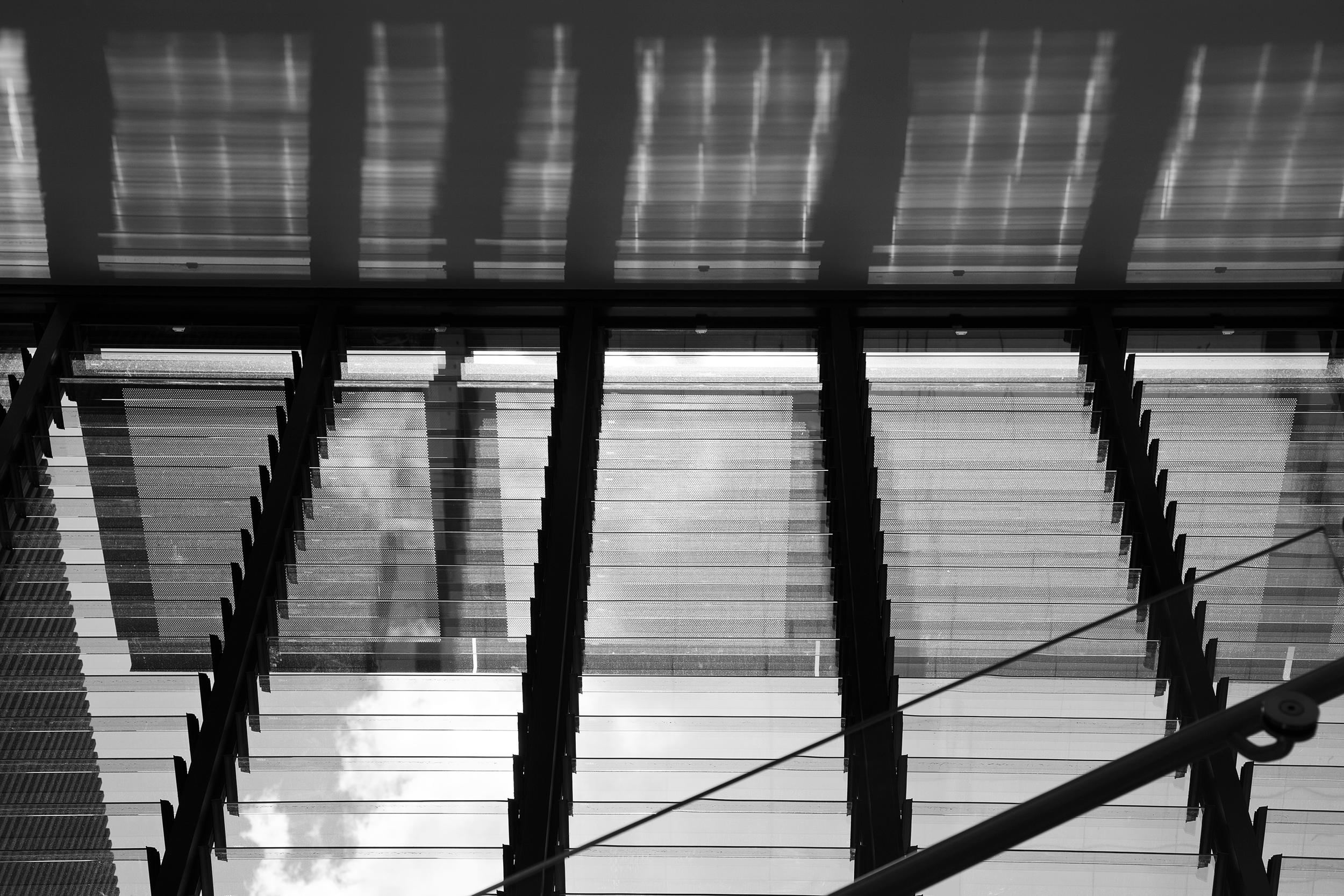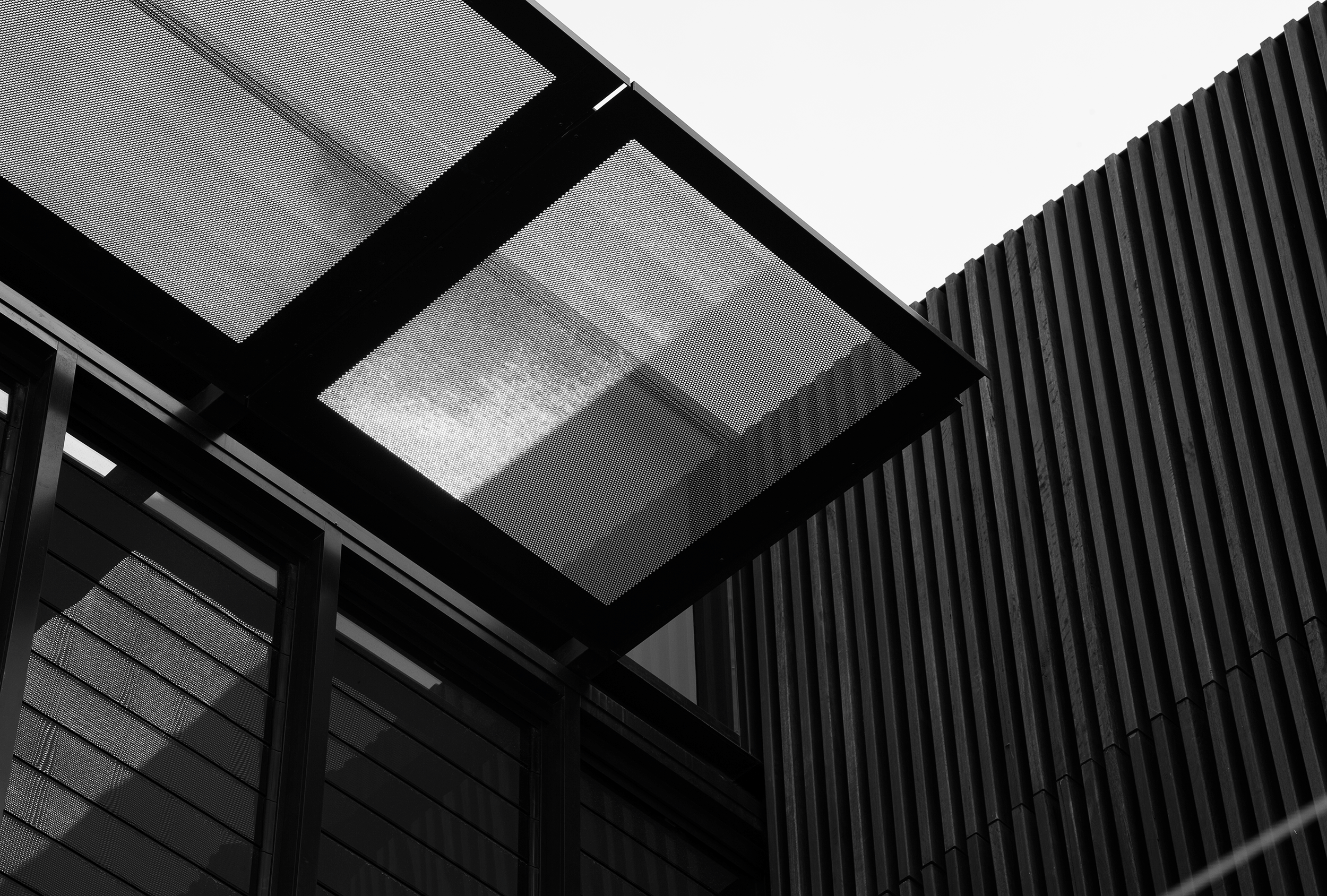 A north-facing courtyard is integrated into the flexible ground-floor concept. It features an overhead frame for vine growth, to produce seasonally appropriate shade. Louvres and sliding doors can be opened to the courtyard on sunny days, increasing circulatory fluidity and ventilation.