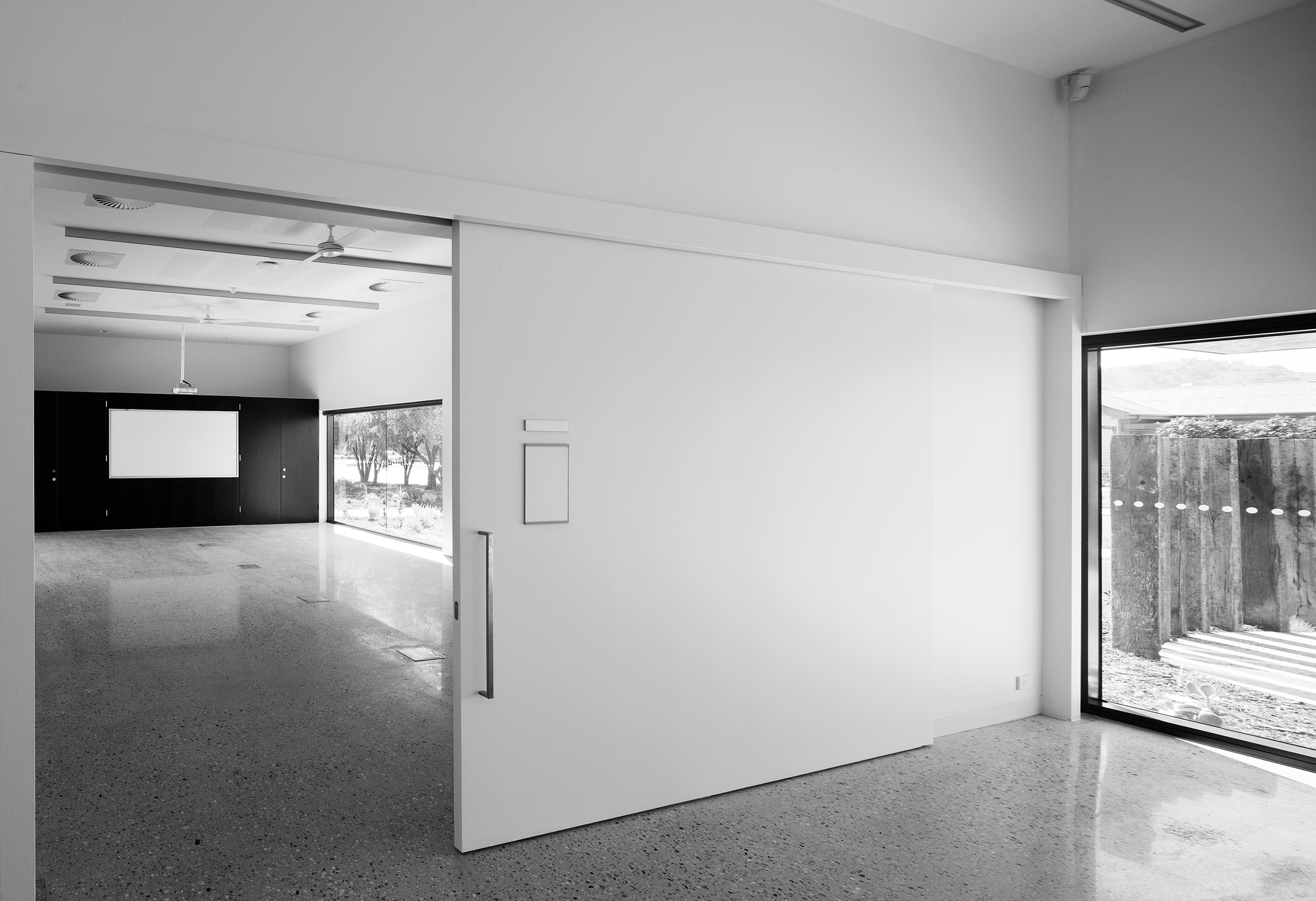 The building is intended for both TAFE and community use. It has a flexible ground floor. Internal walls are variously operable, enabling different configurations of the plan to cater for diverse uses. Spaces can typically be enlarged or enclosed along two axes, while key circulation zones remain undisrupted. We developed the plan in quick iterations, conscious of the broad user group’s need for comprehensive utility, as well as the client’s tight deadline and requirement for modular componentry.