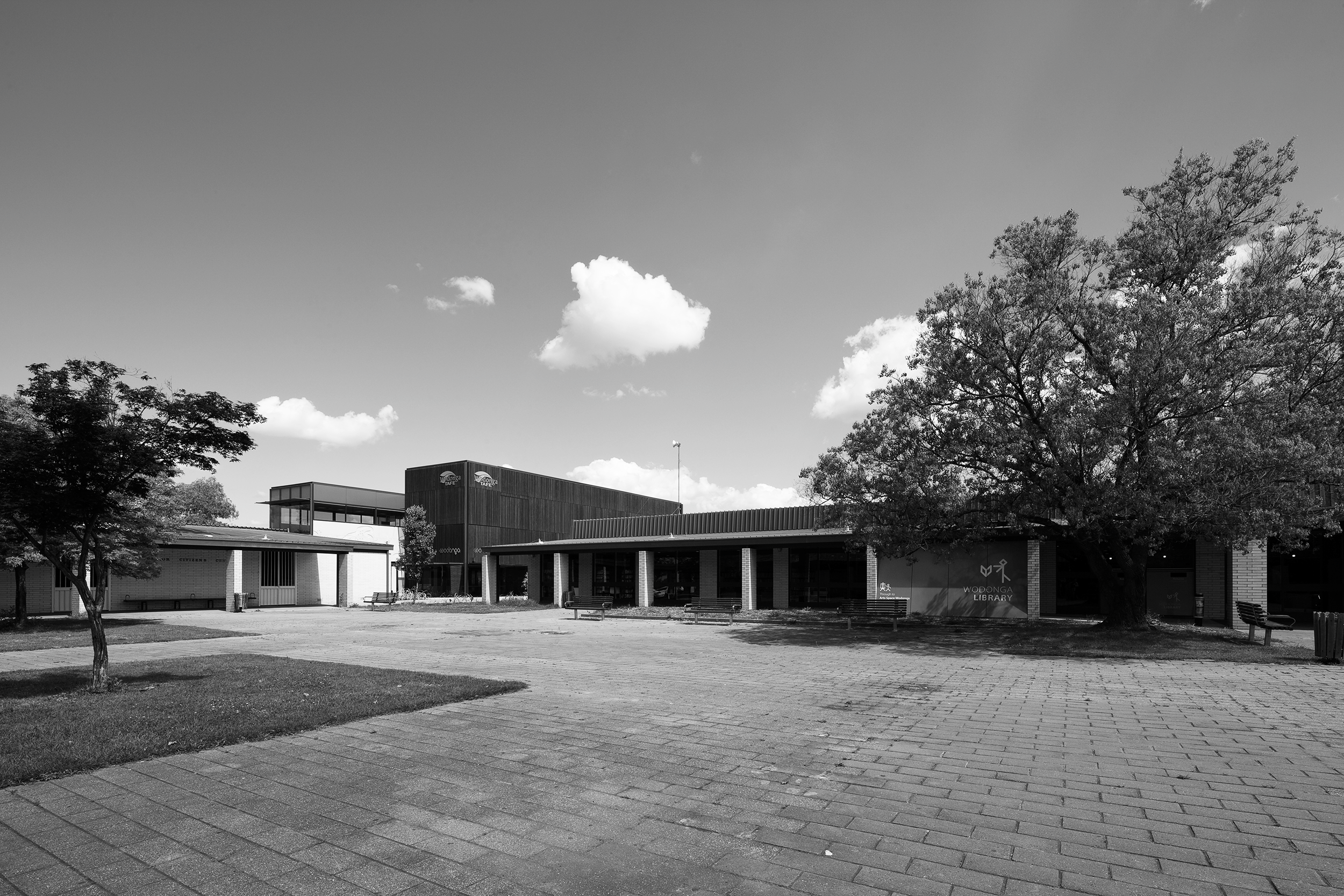 The Sustainable Skills Centre connects with spaces adjacent to its site, including pedestrian paths and a lively piazza.